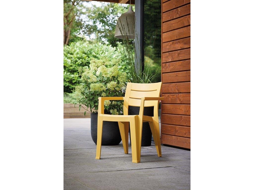 Očekáváte početnou návštěvu, ale nemáte ji kam posadit? Potřebujete venkovní židle pro vaši restauraci, kavárnu či bistro? Pak vám skvěle poslouží zahradní židle Keter Julie s moderním designem, který se hodí k různým druhům stolů. Na židli oceníte zejména její stohovatelnost. Díky tomu ušetříte prostor při skladování více křesel najednou. Zároveň vám tato židle s opěradlem a područkami poskytne komfort při venkovním posezení.