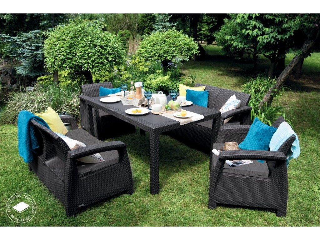Zahradní nábytek Keter Corfu Fiesta set dvě dvousedačky + dvě křesla + stůl grafitový