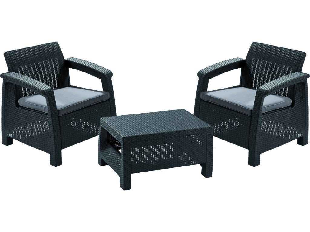 Zahradní nábytek Keter Corfu weekend set dvě křesla + stůl grafitový