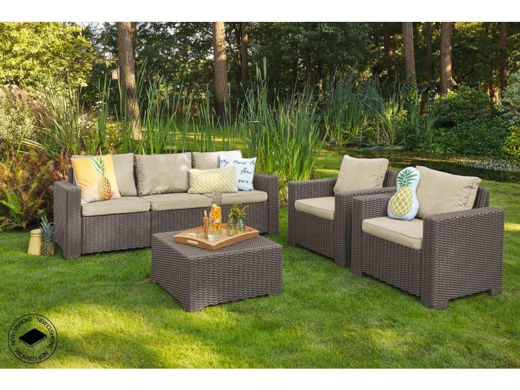 Zahradní stůl California Cappuccino značky Keter vás nadchne svým nevšedním designem v imitaci přírodního ratanu. Konstrukce je přitom pevná a vydrží běžné zatížení venkovního provozu.