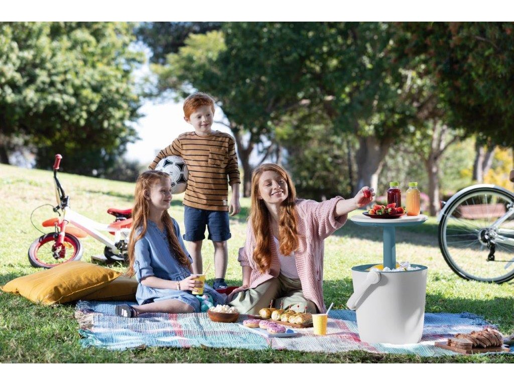 Po rozložení vznikne z malého stolečku praktický a stylový piknik bar. Úložný prostor ukrytý pod deskou stolku naplňte ledem a dopřejte si ledové osvěžení v horkých letních dnech. Díky dvojitým stěnám stolku vydrží nápoje studené ještě déle.