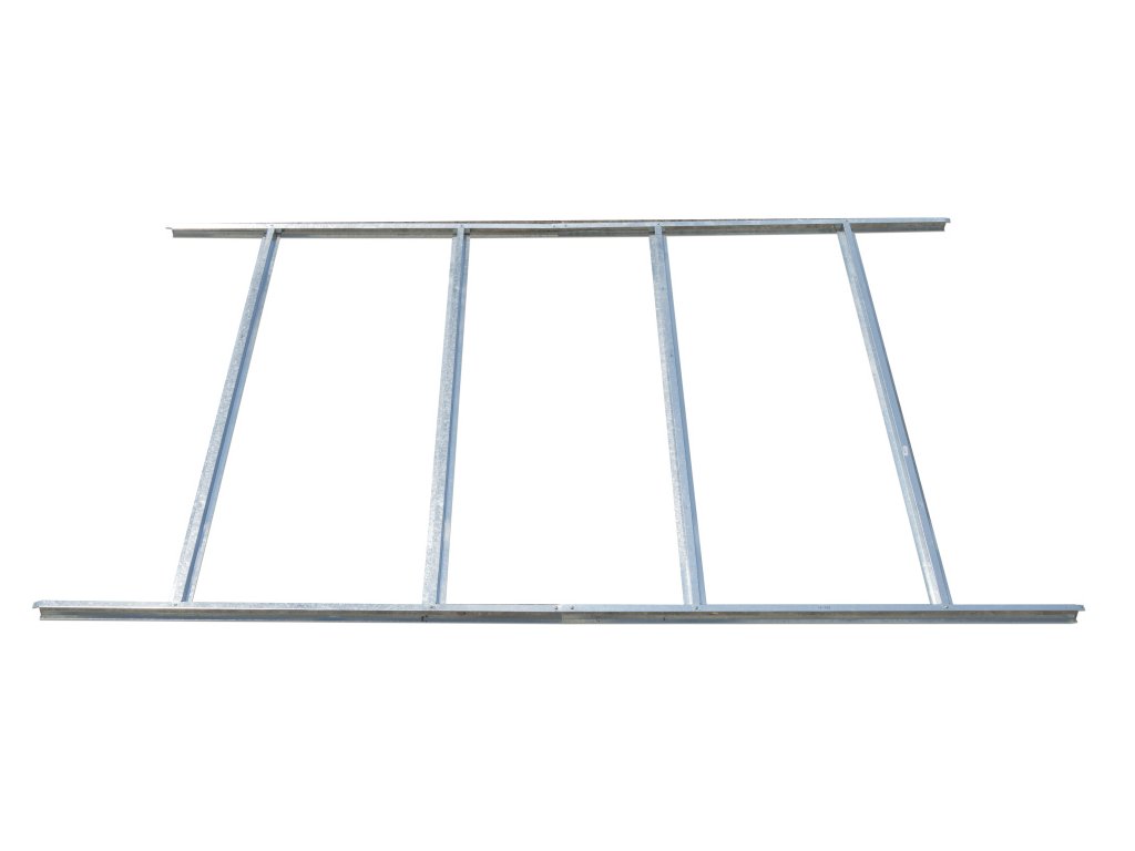 Základnu umístěte na zpevněný rovný povrch pod vaším zahradním domkem. Poté na ni připevněte podlahu z dřevěných prken, OSB desek, apod.